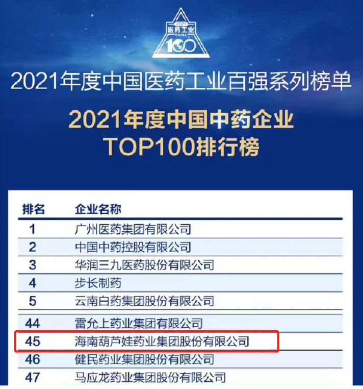万众瞩目的2021年度中国医药工业百强系列榜单在会上盛大发布,BG视讯药业集团百尺竿头更进一步,位列中国中药企业TOP100排行榜第45位,连续第三年入围中国中药企业TOP100百强榜。